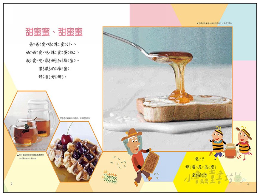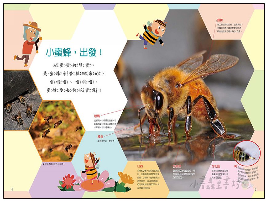 香香甜甜的蜂蜜,大家都喜歡,你知道蜂蜜是怎麼來的?蜜蜂是怎麼採蜜、釀蜜?蜜蜂王國裡有哪些成員、牠們各負責什麼工作呢?養蜜蜂的叔叔是怎麼照顧蜜蜂?讓我們一起來看看。